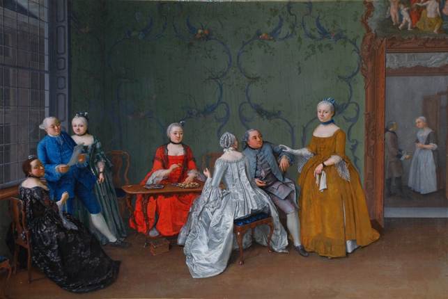 Elisabeth Geertruida Wassenbergh, De conversatie (1763-1765). In particulier bezit, Amsterdam. RKD 69307.